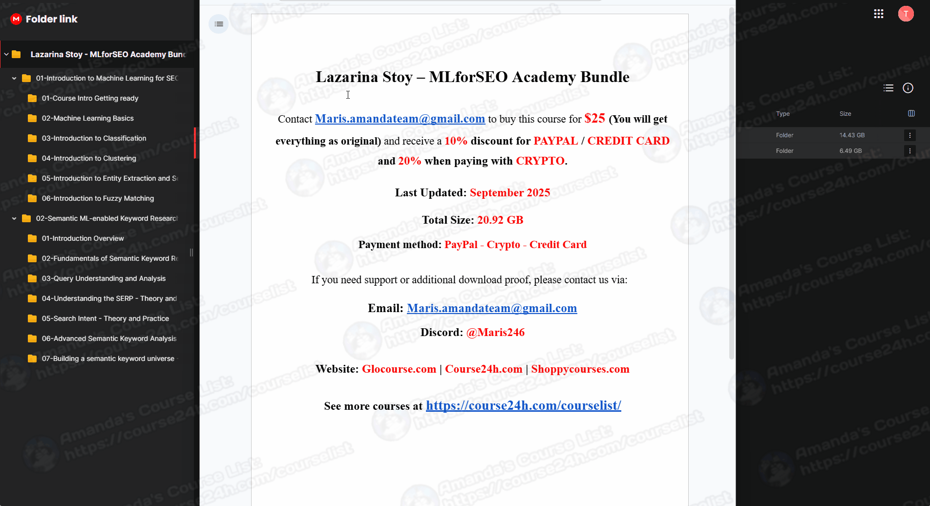 Sale Page: https://academy.mlforseo.com/product-category/courses/