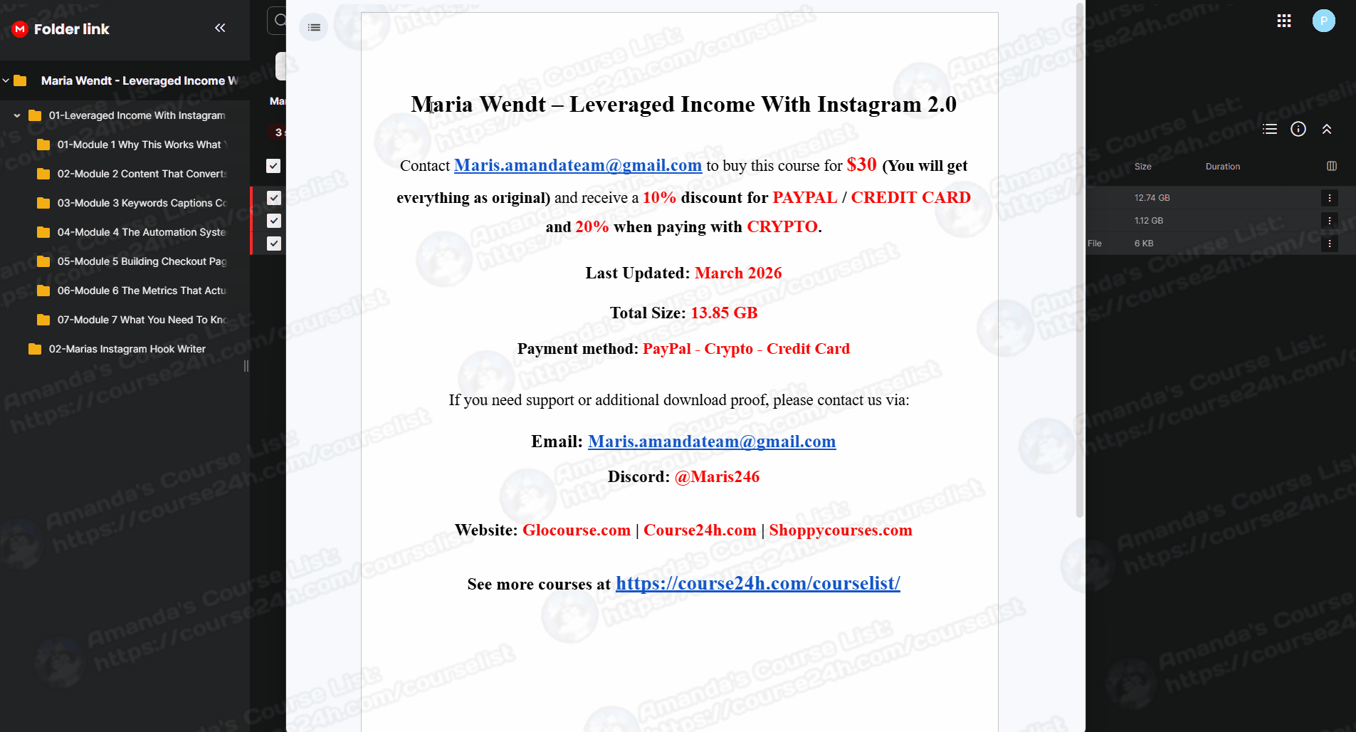 Sale Page: https://mariawendt.samcart.com/products/leveraged-income-with-instagram