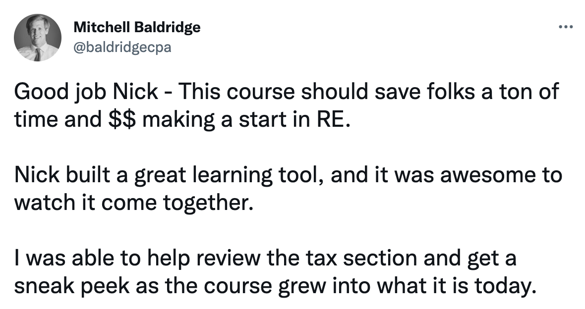 The Real Estate Masterclass is the very best of 400+ hours of concentrated work, over 90,000 words, dozens of deal breakdowns, videos, quizzes, and more. If you ever wanted an honest, in-depth look at real estate as a career or investment option, I promise you won’t find a more complete course than this one.