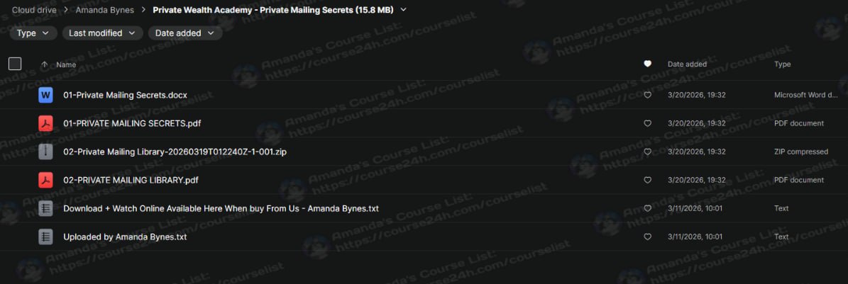 • Private Wealth Academy – Private Mailing Secrets Private Wealth Academy – Private Mailing Secrets 997 $ 30 $